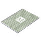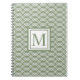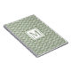 Dieses moderne, trendige Notebook zeichnet sich durch ein weißes geometrisches Gitter aus, das sich durch ein durchgehendes Design mit schlauem, grünem Hintergrund auszeichnet. In der Mitte befindet sich ein gerahmter Monogramm-Brief in der gleichen Weissfarbe.