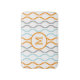 Elegante moderne grauorange und hellblaue Farbtöne, moderne geometrische, abstrakte, nahtlose Muster über den weißen Hintergrund. Anpassbare Monogramm.