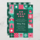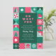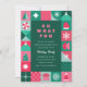 Eine kühne, helle und farbenfrohe Weihnachtsfeier mit geometrischen Formen von Weihnachtsbäumen, Sternen, Schneeflocken, Ornamenten, Milben, Weihnachtsmannmütze, etc. Diese niedliche Feiertagsveranstaltung findet in den Farben Rosa, Hellblau und Grün statt. Der gesamte Text ist bearbeitbar. Auf der Rückseite ist ein sich wiederholendes Muster. Diese Einladung eignet sich sowohl für Firmenfeiern als auch für private Feierlichkeiten.