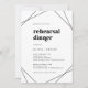 Dieses moderne, geometrische Dinner-Angebot für Proben eignet sich perfekt für eine einfache Hochzeitsfeier. Das klassische Design besticht durch geometrische Diamanten- und Dreiecksformen und rustikale Bohustypografie mit elegantem, modernem Industriegefühl.