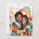 Personalisieren Sie mit Ihrem bevorzugten Foto. Hübsch, modern, geometrisch, Save the Date mit Formen in Rosa, Pfirsich, Orange, Grün, aquamarin und Blau.