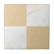 Diese moderne Keramik-Kachel weist ein geometrisches Design auf, das mit goldenen Schachbrettern auf einer Marmorstruktur versehen ist.