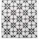 Ein moderner abstrakter geometrischer Schwarz-Weiß-Duschvorhang im Badezimmer. Erfrischen Sie Ihre Badezimmerdekoration mit einem modernen grafischen Fliesendesign mit hübscher Symmetrie.