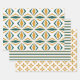 Drei verschiedene Muster in dunkelgrün und weiß mit goldenen Akzenten und einem asiatischen Flair. Diamant, Streifen und fast Shippo - ein japanisch inspiriertes Muster.
