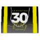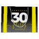 Feiern Sie die große Drei mit diesem stilvollen, modernen Design, das mit einem auffallenden schwarzen, weißen und hellgelben Block und handgeschriebenem Set auf einem schwarz bis rauchig grauen Hintergrund besticht. Umkehrung zeigt identisches Design. Design © W.H. Sim. Weitere Informationen unter zazzle.com/expressionsoccasions