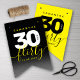 Mit diesem stilvollen, modernen Design mit markantem Block und handgeschriebenem Set auf abwechselnd schwarz-rauchgrau und hellgelb gestalteten Hintergründen feiern Sie das große Drei-Ach. Design © W.H. Sim. Weitere Informationen unter zazzle.com/expressionsoccasions