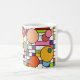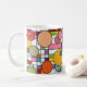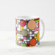 Diese Tasse hat ein modernes Design eines Gitters, das in Retrofarben mit ein paar Rechtecken eingefärbt ist und darüber Kreisen.
