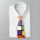 Diese Krawatte hat ein modernes Design eines Gitters, das in Retrofarben mit ein paar Rechtecken eingefärbt ist und darüber Kreisen.