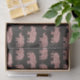 Moderne, schicke, glamouröse, niedliche und mädchenhafte Imitate druckten Rose goldfarbenen Glitzer und rosa gestreifte Rhinozeros-Tiermuster auf schwarzem Hintergrund.