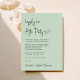 Schick hellgrüne Hochzeitsempfehlung mit "Happily Ever After Party" in einem minimalistisch-modernen Drehbuch. Personalisieren Sie einfach Ihre Einladung und fügen Sie Ihre Namen in ein signaturähnliches Skript ein.