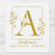 Das stilvolle Flaschenlabel besticht durch den handlich gezeichnet goldenen botanischen Rahmen mit dem botanischen Buchstaben A in der Mitte. Personalisieren Sie Ihre Daten mit Namen und Datum des Paares