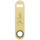 Erstellen Sie Ihren eigenen, personalisierten, modernen, eleganten schwarzen Kalligraphie-Schrift-Schriftart mit Monogramm auf Imitaten goldenen Hintergrund, trendigen schicken stilvollen coolen beruflichen extra haltbaren Edelstahl-Schnelligkeit Flaschen-Taste aus Bar mit einer Länge und Design, um Flaschen mit Geschwindigkeit und Leichtigkeit zu öffnen. Geben Sie einfach Ihren Namen / Familiennamen ein, um ihn anzupassen. Macht ein großartiges Geschenk für Geburtstag, Weihnachten, Feiertage, Hochzeit, Abschluss, Vatertag, Freundschaftstag, besondere Verkostungen, Meilenstein Geburtstage und mehr, für Ihre Liebsten, Mama, Papa, Freundin, Ehemann, Ehefrau, Paare, Neuvermählte, Bierliebhaber, Barkeeper, Männer, Frauen, ihn, sie, Freunde und Familie.