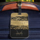 Das junge, moderne Gepäckanhänger - sowohl Zebra als auch Leopard - in Pinselstrichen mit Gold, Glitzer, Schwarz und mit dem Monogramm, dem Vornamen und dem Initialnamen Ihres Skriptes.