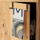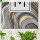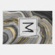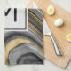Ein Küchentuch mit abstraktem Design mit einem agaten Geodenmineralmuster. Gold, Grau, Weiß und Schwarz setzen sich zusammen und bilden elegante Farbwellen. Ein hellgraues Quadrat mit einem dünnen schwarzen Rand, der oben mit dem Monogramm-Initial überlagert ist. Ideal, um einen Hauch von Klasse und Eleganz zu vermitteln.