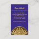 Diese Visitenkarte ist mit einem goldenen und schwarzen Mandala auf Vorder- und Rückseite mit leichtem Goldtext ausgestattet. Alle Texte können bearbeitet werden. Reverse hat eine Linie, die den Raum zwischen Namen und Kontaktdaten/sozialen Medien zur Hervorhebung definiert. Diese Variation ist auf königsblau/lila Hintergrund.