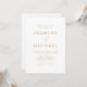 Einfache und elegante Einladungen für eine Hochzeit mit einem goldenen, handgeschriebenen Drehbuch, kombiniert mit einer modernen Schrift mit weißem Hintergrund. Personalisieren Sie die Front der minimalistischen Hochzeitseinladung mit Ihrem Namen und Ihre Hochzeitsdetails. Personalisieren Sie die Rückseite der Einladung mit Hochzeitsdetails wie Empfang-Informationen, Hotel-Unterkünfte, UAWG-Instruktionen und Hochzeitswebsite. Fügen Sie Ihren Wunschwebseiten-Link in die beiliegende QR-Code-Vorlage ein, damit Ihre Gäste ganz einfach online UAWG und weitere Hochzeitsinformationen erhalten. Die goldenen Einladungen für Hochzeiten sind die perfekte Wahl für moderne Hochzeiten.