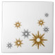 Modernes, inspiriertes Design aus der Mitte des Jahrhunderts mit Vintagen Retro-Sternexplosionen aus Gold und Silber auf weißem Hintergrund. Einfaches, sauberes modernes Design.