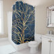 Modernes Gold Tree Silhouette Minimales blaues Des Duschvorhang