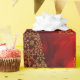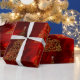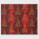 Ein prächtiges Gold- und Rottopapier mit einem Muster goldener Weihnachtsbäume aus Metall, die alle aus kleinen Goldschneeflocken und Schneeflocken bestehen, auf einem luxuriösen, glänzenden roten Hintergrund. Dieses sehr elegante Weihnachtspapier wird sicher eine raffinierte und luxuriöse Touch zu Ihrem Geschenk hinzufügen, die diese Ferien abschließt.