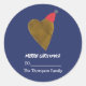 Modernes Goldenes Herz mit Weihnachts-Hat Dunkelbl Runder Aufkleber