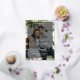 Eine moderne und trendige zweiseitige Foto-Hochzeitseinladung, die Ihre Hochzeitsinformationen über einem Ihrer Lieblingsfotos mit einem schwarz-transparenten Overlay zeigt und durch elegante Schriftzeichen-Typografie in echter Goldfolie betont wird. Einfach anpassbar mit den Details Ihrer Hochzeitsfeier in weiß und den Braut- und Bräutigamen in echter Folie, für einen romantischen, aber modernen und stilvollen Look. Die Rückseite der Karte zeigt ein zweites Bild, Ihre Monogramme und Ihr Hochzeitstermin.