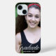 Dieses elegante, weiße Typografie-Overlay Foto-Diplom-Foto iPhone Gehäuse verfügt über eine schicke weiße Schrift über Ihrem High School- oder Uni-Abschluss-Foto. Passen Sie mit Ihrem Namen und Ihrer Klasse unter der schönen Kalligrafie für einen guten Sake für einen stolzen Elternteil.