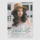 Feiern Sie den Abschluss mit unserer stilvollen vertikalen Foto Abschluss Magnetkarte. Der Ankündigungsmagnet des Abschlusses zeigt das vertikale Foto des Absolventen mit "Graduate" in einem grünen, modernen Kalligrafiebeschild-Overlay. Personalisieren Sie den modernen Magneten des Abschlusses, indem Sie den Namen, den Namen der Schule und das Jahr des Abschlusses des Absolventen hinzufügen. Das Design ist perfekt für Absolventen der Highschool und der Uni.