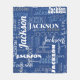 Dieses moderne Graffiti-Langzeitmuster blaue Decke weist ein trendiges typografisches Graffiti-Muster in Blau-, Weiß- und Grautönen auf, mit Ihren Namen in einem typografischen Muster verschiedener Schriftart. Die Lage des Hotels ist perfekt für einen Städtetrip.