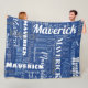 Dieses moderne Graffiti-Langzeitmuster blaue Decke weist ein trendiges typografisches Graffiti-Muster in Blau-, Weiß- und Grautönen auf, mit Ihren Namen in einem typografischen Muster verschiedener Schriftart. Gutes Geschenk für die Familie mit Ihrem Familiennamen!