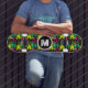 Dieses moderne Graffiti Paint Splash Personalisierte Monogram Name Skateboard zeichne Aufmerksamkeit und erlaubt Ihnen, Ihren individuellen Stil zu zeigen.