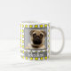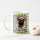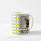 Moderne, graue und gelbe Punktgeometrie zeigt geliebte Haustiere. Kaffee, Tee oder Coca mit Ihrem wertvollen Mops oder einem der Tiere werden den Tag angenehm heitern. Das Foto Ihres Hundes oder Ihrer Katze und sein Name machen es so besonders und können ein perfektes Geschenk für jemanden mit einem neuen Mops oder anderen Haustieren.