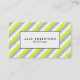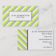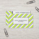Ein mutiger und moderner Entwurf, der diagonale Limone grüne, weiße und graue Streifen mit einem weißen Kasten umrissen im Schwarzen in der Mitte für Ihren Namen und Beruf kennzeichnet.