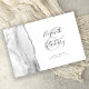 Dieses elegante Gästebuch besticht durch ein grau-weißes Aquarelldesign, das mit Imitaten aus silberem Glitzer besticht. Einfache Anpassung des kohlegrauen Textes auf einem weißen Hintergrund, mit den Namen der Braut und Bräutigam in whimsical Handschrift Kalligraphie über einen großen Ampersand. Fügen Sie dem Vorder- und Rückgrat einen zusätzlichen Text Ihrer Wahl hinzu.
