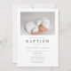 Modernes Graustreifen Boy Baptisse Foto Einladung