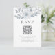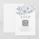 Modernes Gray Florals QR Code Wedding RSVP Karte