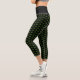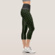 Modernes, grünes Lorbeerblatt-Muster auf schwarzen Capri-Leggings.