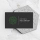 Ein abstraktes grünes Strauchmotiv wird neben Ihrem Namen oder Firmennamen für ein einzigartiges Logo auf dieser individuell gestaltbaren Visitenkarte für Landschaftsgärtner oder Gärtner verrechnet. Das doppelseitige Kartendesign bietet viel Platz auf der Rückseite für Ihre Kontaktinformationen und Details. Entworfen für Rasenpflegeunternehmen, Landschaftsbetriebe, Gartendesigner und mehr. Kunstwerk und Design © 1201AM Design Studio