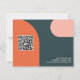 Eine moderne Hochzeitskarte mit RSVP-Gehäuse, die mit Pop von orange, aquamarin blau grün und pfirsichfarben und groovy Bogen für einen boho Retro-70er-Stil bestückt ist. Es wird mit einem QR-Code zu UAWG oder Ihre Gäste zu Ihrer Hochzeitsstelle zu leiten.