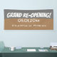 Moderne Visitenkarte mit fett weißem Schriftart auf zwei farbigen urbanen Farbblockhintergrund. Drei Zeilen benutzerdefinierbaren Text, um Ihre Wiedereröffnung anzukündigen und Details oder spezielle Nachricht an Ihre Kunden / Community.