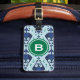 Modernes grün-blaues ikat Stammes- Mustermonogramm Gepäckanhänger