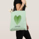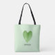 Modernes, grünes Herz-Form Pflanze Blatt auf hellgrünen Tote Beutel. Text kann personalisiert sein.