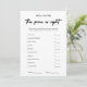 Erleben Sie das Party mit unserer Modern Guess the Right Price Brautparty Game Card! Dieses Spiel mit Spaß wird Ihren Gästen den richtigen Preis geben, um groß zu werden. In dieser modernen Drehung auf der Klassik-Game-Show werden die Gäste am besten versuchen, den nahen Dollarbetrag für alle Gegenstände zu erraten. Mit seinem eleganten Design und seinem ansprechenden Gameplay eignet sich dieses Brautparty-Spiel hervorragend, um jede Feier mit einer Touch der Begeisterung zu bereichern. Unsere Guess the Right Price Brautparty Game Card ist nicht nur eine Explosion, sondern dient auch als stilvoller Sake für die zukünftige Braut. Diese Spielkarte wurde mit viel Liebe zum Detail gestaltet und ist ein modernes Design, das jedes moderne Brautparty ergänzt. Mit unserer Spielkarte werden die Gäste unterhalten und herausgefordert, wenn sie versuchen, die Preise richtig zu erraten. Es ist eine großartige Art, das Eis zu brechen und alle einzubinden. Außerdem ist es eine wunderbare Gelegenheit für Braut und Bräutigam, sich an ihre eigene gemeinsame Reise zu erinnern. Machen Sie Ihr Brautparty unvergesslich mit unserer modernen Guess Brautparty Game Card zum richtigen Preis. Erleben Sie einen Tag voller Spannung, Lachen und freundlicher Konkurrenz. Machen Sie sich bereit zu spielen und erstellen Sie Erinnerungen, die ein Leben lang halten!