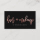 Moderne schicke Rose Gold und schwarze Visitenkarte mit trendiger Pinsel-Schrift Kalligraphie, die den individuelle Name mit "Haar und Make-up" überzieht. Auf der Rückseite ist Platz für den nächsten Termin Ihres Kunden, mit Salon und persönlichen Informationen. Machen Sie es zu Ihrem eigenen einzigartigen Branding-Tool, indem Sie Textstil, Farben, Größen unter "Weiter anpassen" anpassen.
