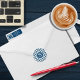 Modernes Hahnentrittmuster Blau-Weiß-Monogramm Runder Aufkleber