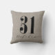 Rustikaler Burlap Hintergrund mit modernem Stil 31 und Oktober Skript. Das Design zeigt eine Spinne, die sich von den 3 absponnen. Dieses Design ist einfach und passt zu den modernen Halloween-Dekorationen.