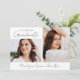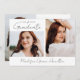 Mit dieser stilvollen, modernen Ankündigung des Foto Abschlusses verkünden Sie die Leistungen und Pläne Ihres Absolventen. Auf der Vorderseite der Ankündigung werden 2 Fotos angezeigt - 1 waagerechtes und 1 vertikales Foto. "Graduate" wird in einem trendigen, handgeschriebenen schwarzen Skript angezeigt. Personalisieren Sie die Ankündigung mit dem Abschluss Jahr und dem Namen des Absolventen. Die Ankündigung kehrt zurück, um ein zusätzliches Foto mit Ihrem eigenen Text in schwarzer Schrift anzuzeigen. Diese 3 Foto Abschluss Ankündigung ist ideal für High School oder Uni-Abschlüsse.