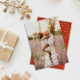 Moderne Weihnachtspostkarte mit handgeschriebenem "Frohen Weihnachten" und Beerenstärken. Die Rückseite der Karte hat ein festliches rot-weißes Muster mit Natur- und Kokettenelementen. Ein stilvoller und festlicher Weg, um Ihre Urlaubswünsche mit einer persönlichen Touch zu erfüllen.