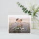 Ein großartiger und nachdenklicher Weg, um Ihrer Familie, Freunden und Mitarbeitern zu danken, die an Ihrem Hochzeitsfeiertag auftauchten, um Ihren besonderen Tag zu unterstützen und zu feiern. Dieses moderne, minimalistische Foto Dankeschön an Sie, mit Skript handschriftlich "danke" und einem Liebe Herz. Ändern Sie einfach die benutzerdefinierte Nachricht auf der Rückseite, indem Sie die Fotos sowohl auf der Vorder- als auch auf der Rückseite durch Ihre Lieblings-Hochzeitsfeier-Fotos ersetzen, indem Sie auf die Schaltfläche "Personalisieren" klicken