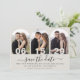 Teilen Sie 4 Ihrer Lieblings-Verlobung-Fotos in diesem modernen bogenförmigen Foto Save the Date auf einem neutralen beigen Hintergrund. Auf der Vorderseite hat es eine Fotoplatte mit 3 bogenförmigen Fotos und auf der Rückseite eine quadratische Vorlage. Ein moderner handgeschriebener Schriftart Zauber Save the Date in freundlichem Stil. Personalisieren Sie die Textvorlage mit Ihren Daten. Diese Karten können sowohl in gedruckter als auch in sofort herunterladbarer digitaler Form bestellt werden.