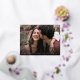 Eine moderne, Save the Date Postkarte, die für Ihr beliebtes, horizontal oder landschaftsorientiertes Vollblutkarton-Foto konzipiert ist. Ihre Namen erscheinen am Ende Ihres Fotos in handgeschriebenen Schriftzeichen aus Goldfolie, darunter Ihr Hochzeitstermin und Ihr Hochzeitsort. Postkarten werden zurückgesetzt, um zusätzliche Save the Date Details, einschließlich Ihrer Hochzeitswebsite, mit Ihrer Rücksendeadresse und Platz für die Empfänger-Adressierung anzuzeigen.